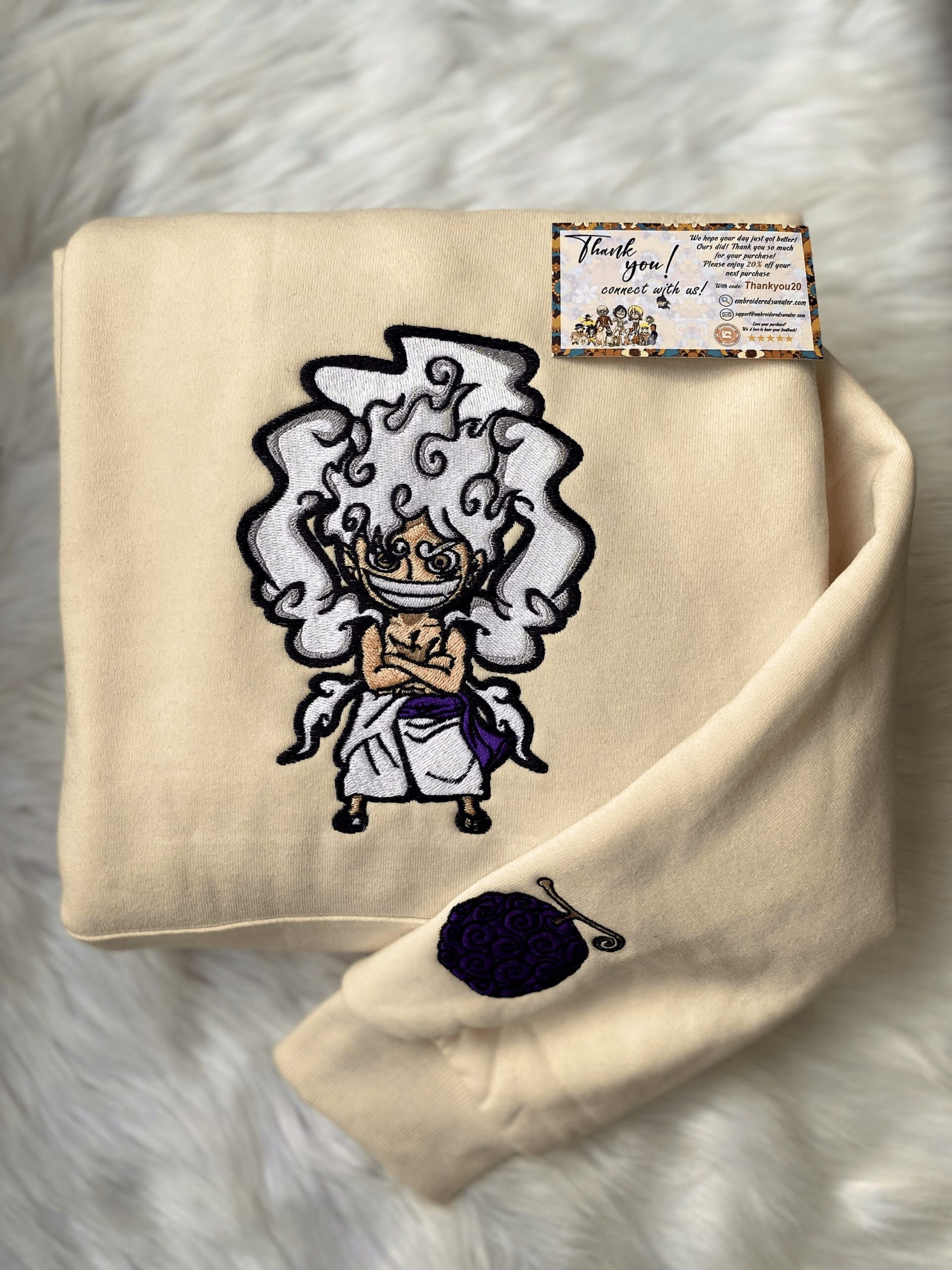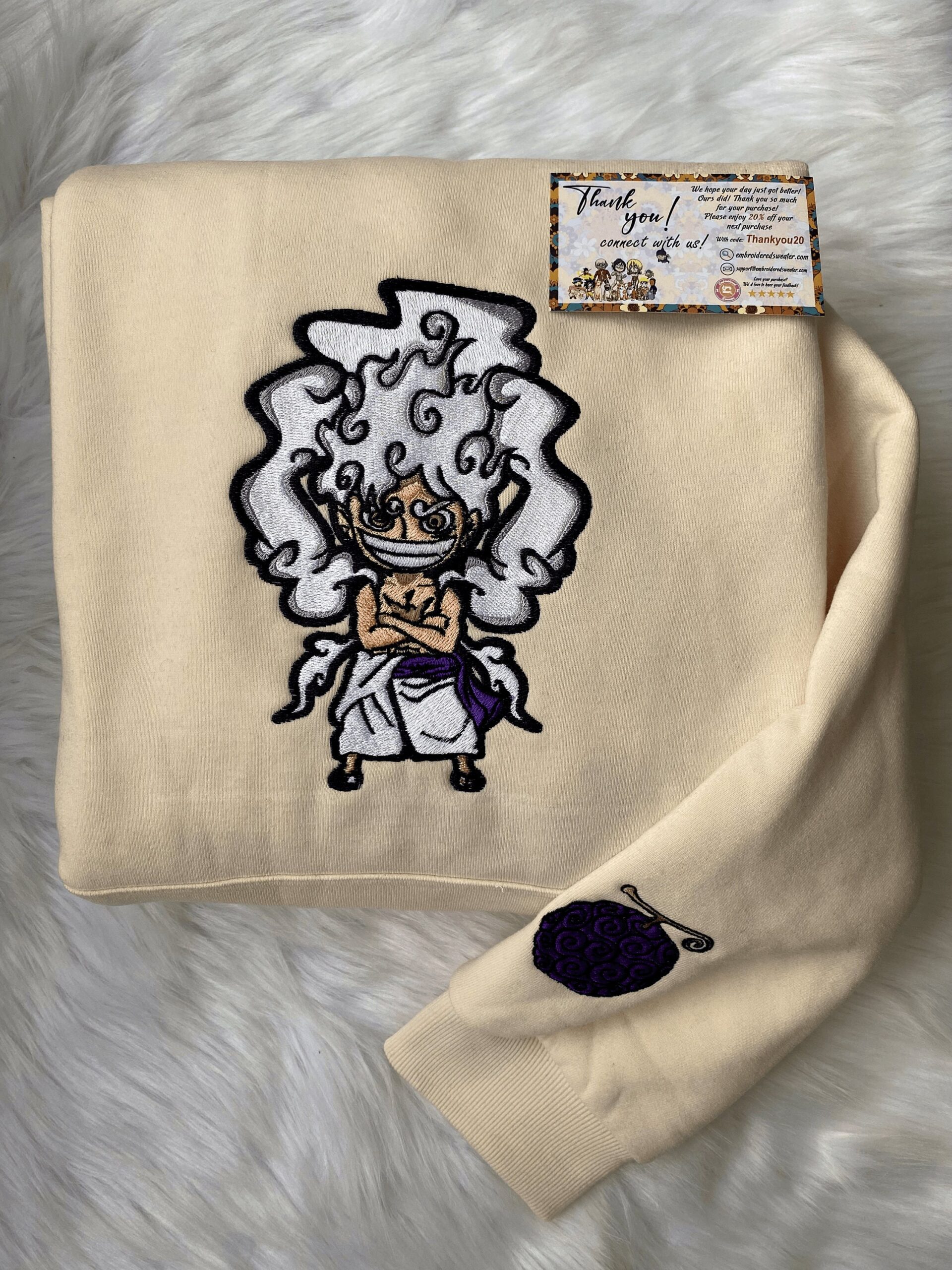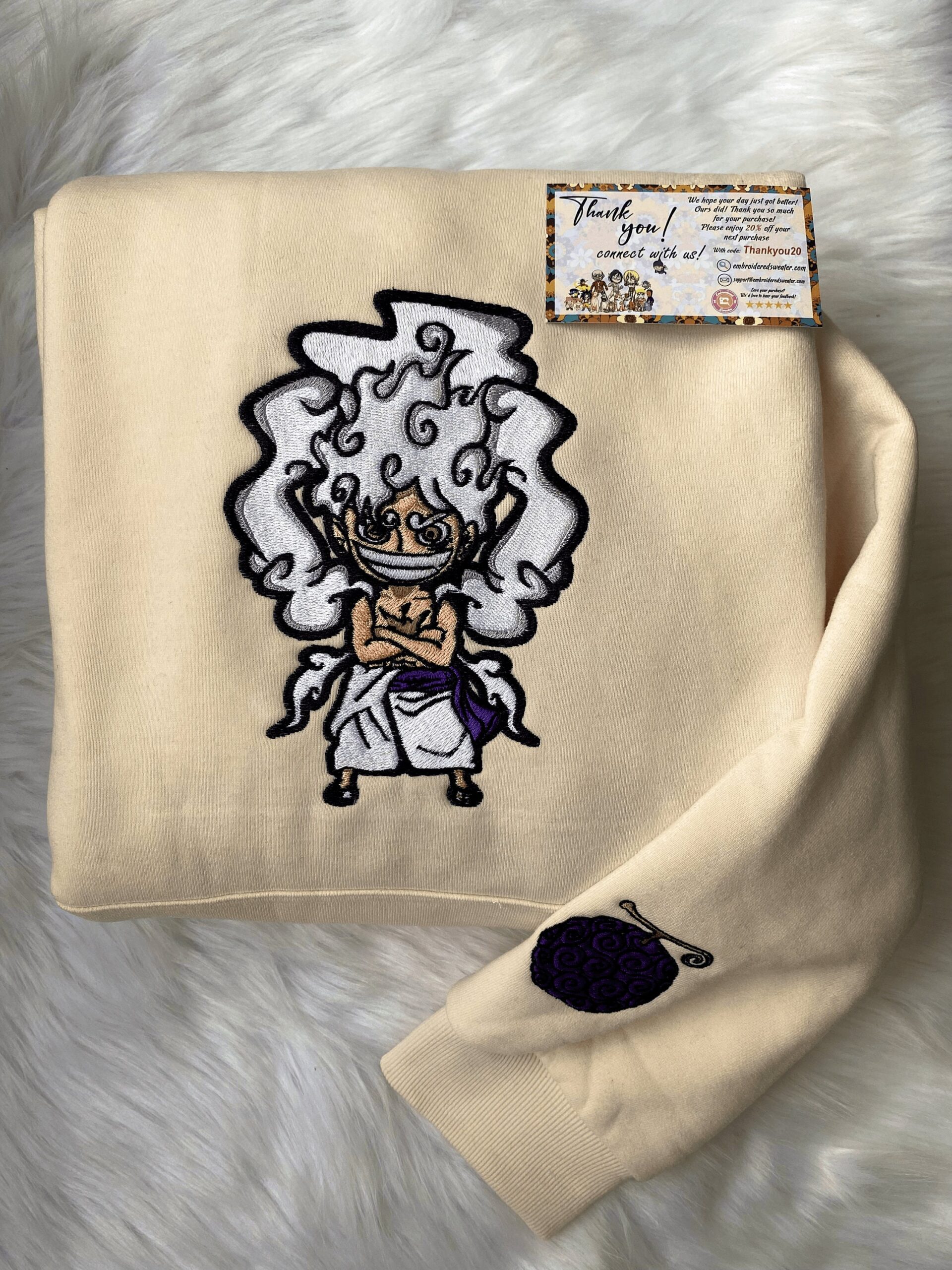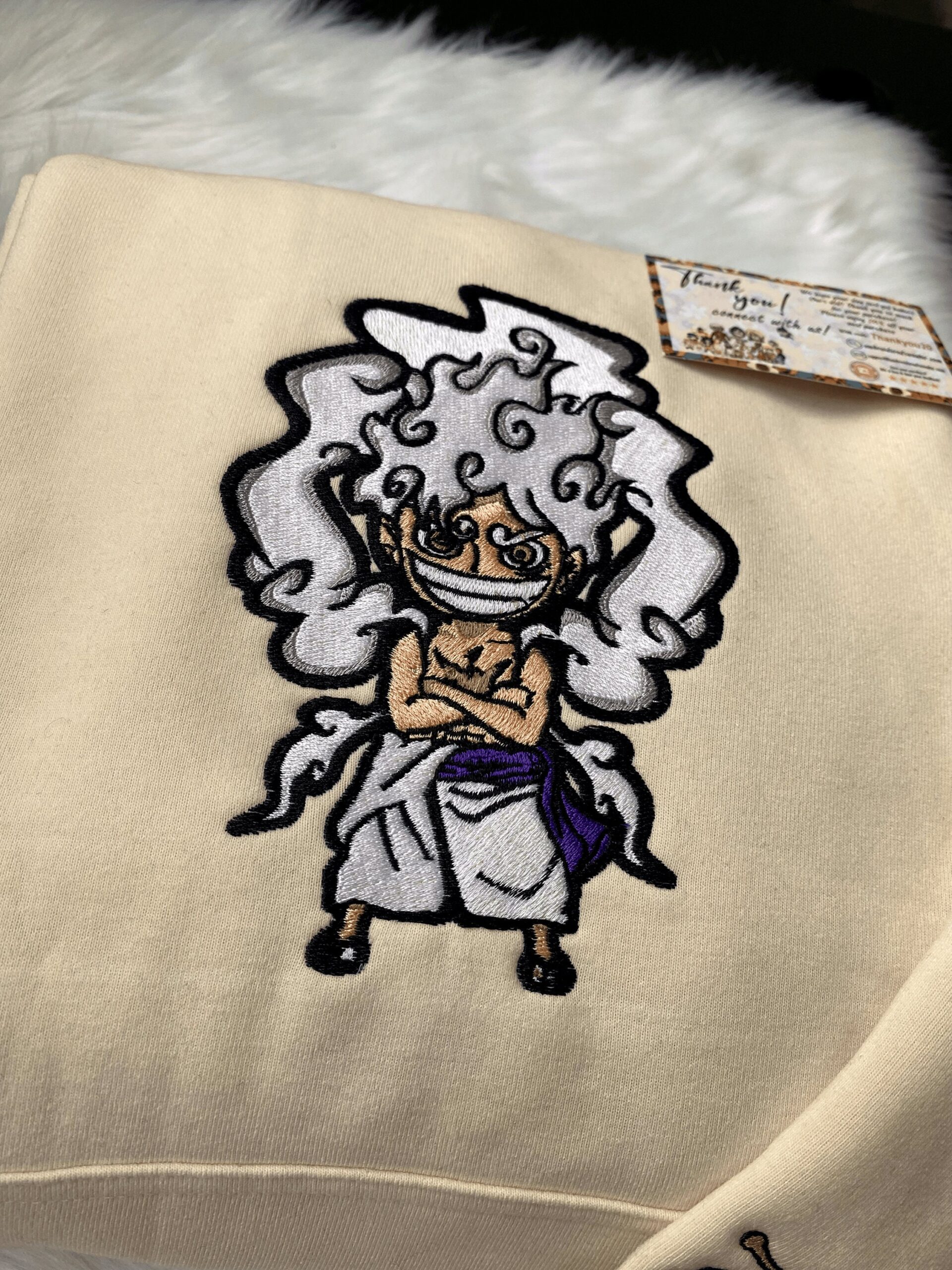 The intricate embroidery adds a touch of sophistication, making it a standout piece in any wardrobe. Whether you’re a die-hard fan or looking for a unique gift for someone special, this Embroidered Monkey D Luffy Gear 5 Crewneck is a must-have